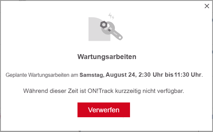 Während des Wartungsfensters kann es zu vorübergehenden Unterbrechungen oder eingeschränktem Zugriff auf die ON!Track 3-Plattform kommen. Wir entschuldigen uns für etwaige Unannehmlichkeiten und bitten um Ihr Verständnis, während wir daran arbeiten, unsere Dienste zu verbessern.