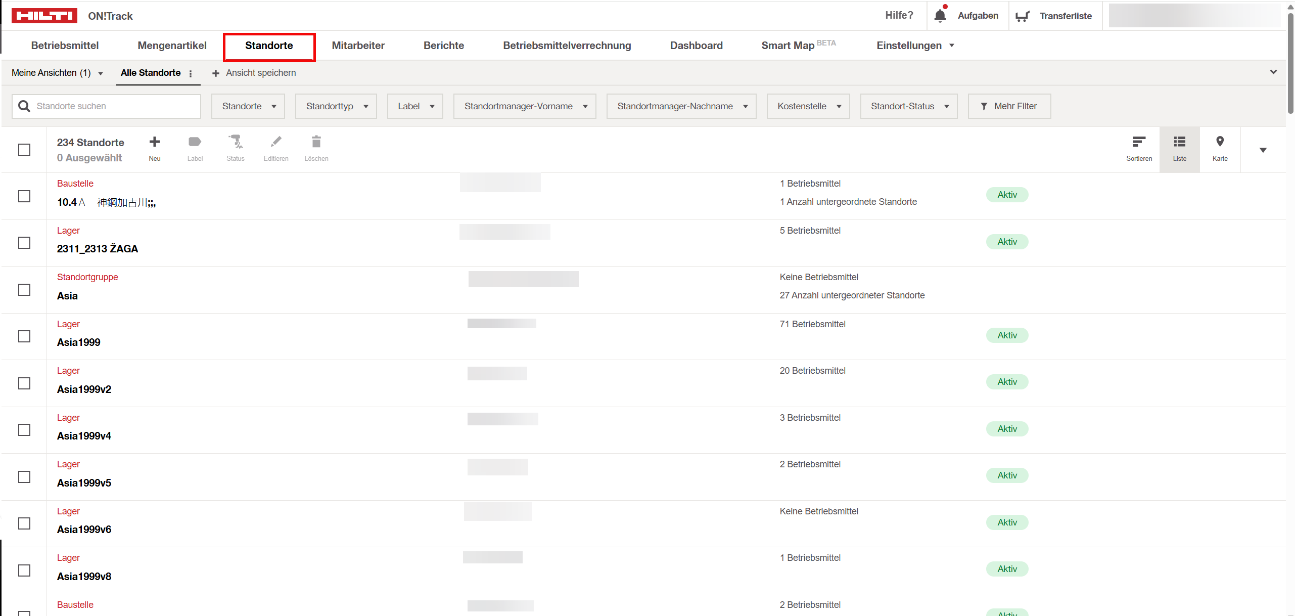 Klicken Sie auf die Registerkarte Standorte, um alle Ihre Standorte zu sehen.