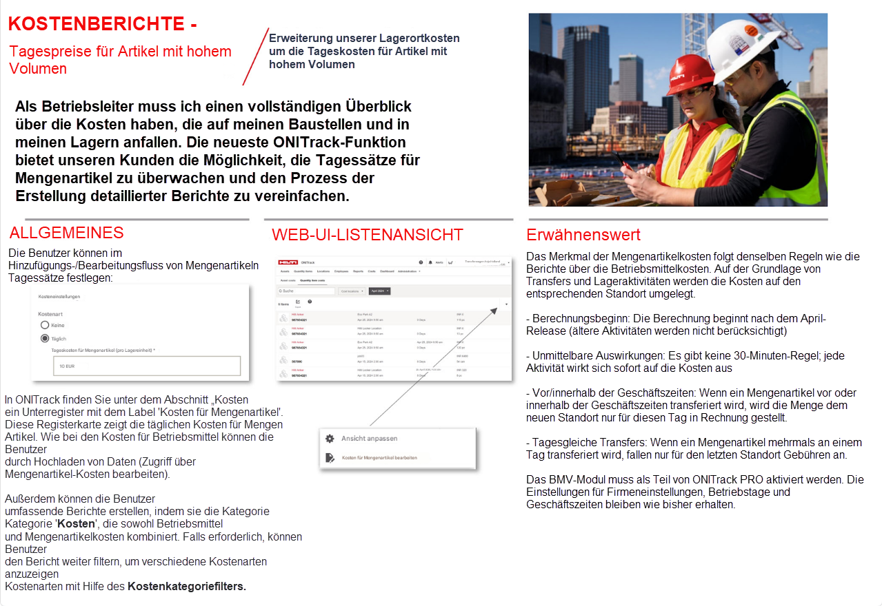 Unterstützung Kosten für Mengenartikel hinzugefügt: Kunden können jetzt die täglichen Kosten für Mengenartikel verfolgen und sie auf der Registerkarte Kosten zusätzlich zu den Assets anzeigen.