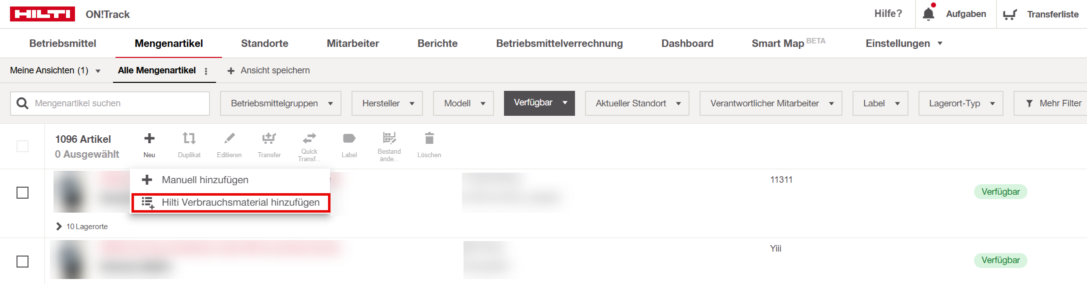 Onboarding von Hilti Verbrauchsmaterialien (Web-Anwendung):