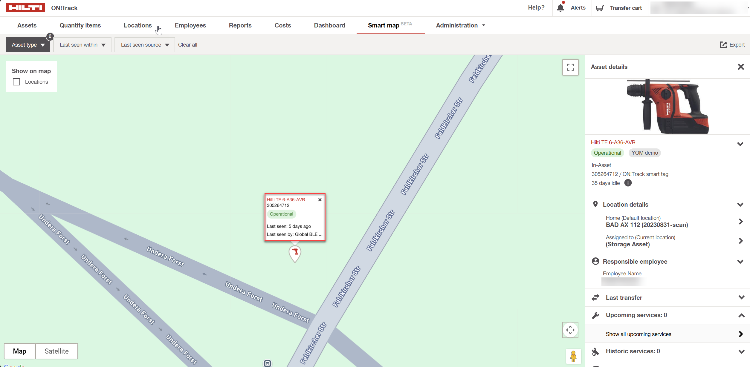 Mit der rollenbasierten Geo-Sichtbarkeit können Sie festlegen, welche Benutzerrollen Geostandorte sehen dürfen - sowohl auf der Smart Map als auch in der Betriebsmitteldetails-Kartenansicht.