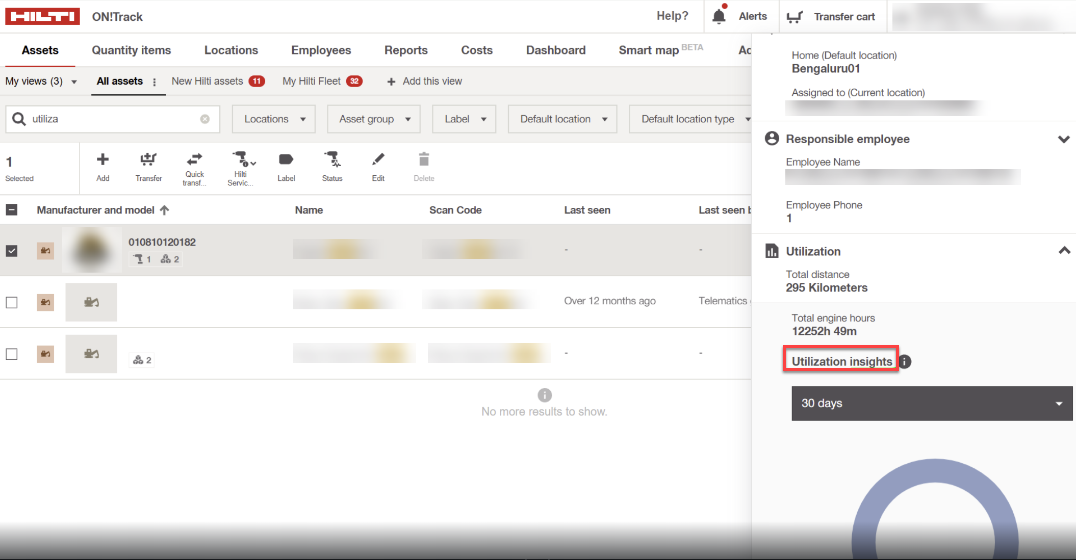 Die Nutzungsübersicht eines Großgerätes wird nun in den Betriebsmitteldetails als "Nutzungsanalysen" (vormals "Zusammenfassung") dargestellt.