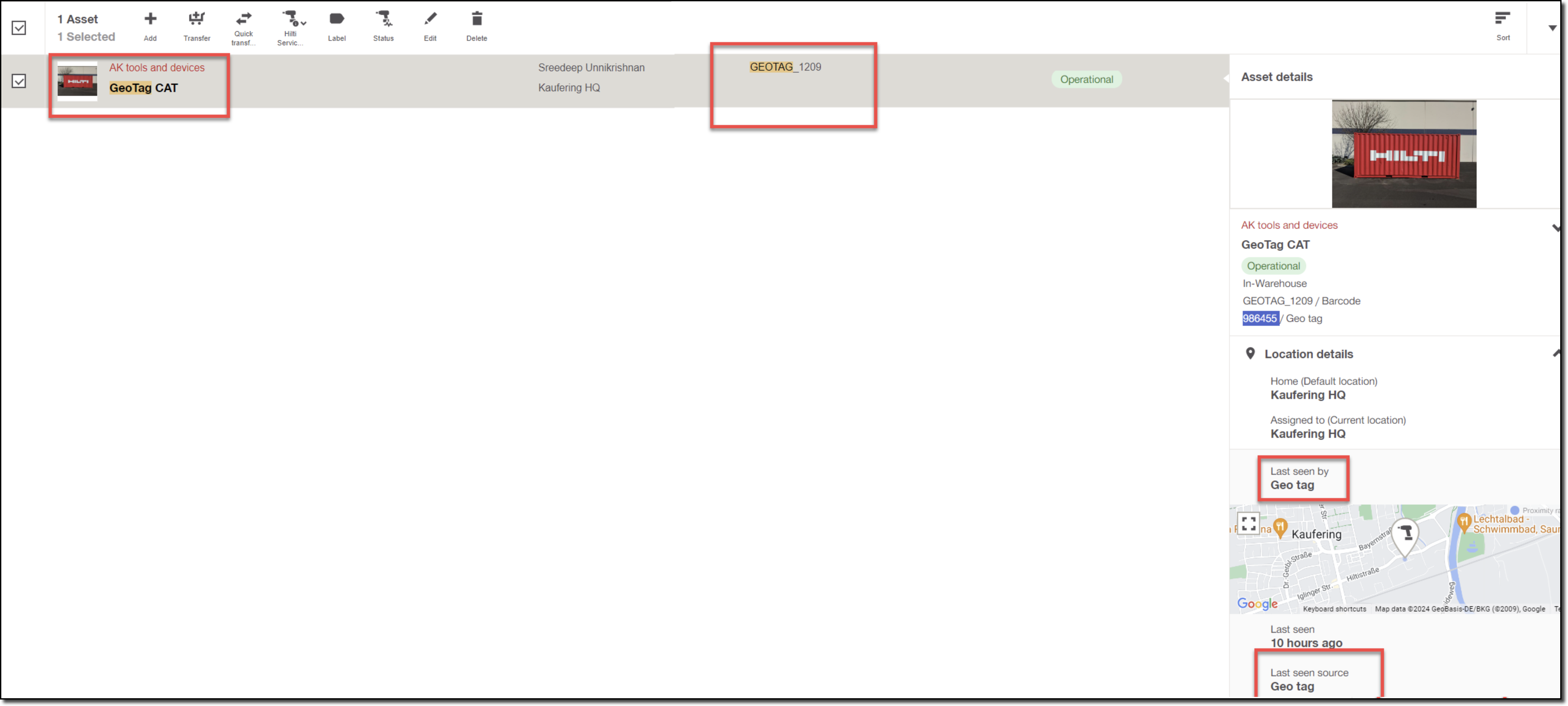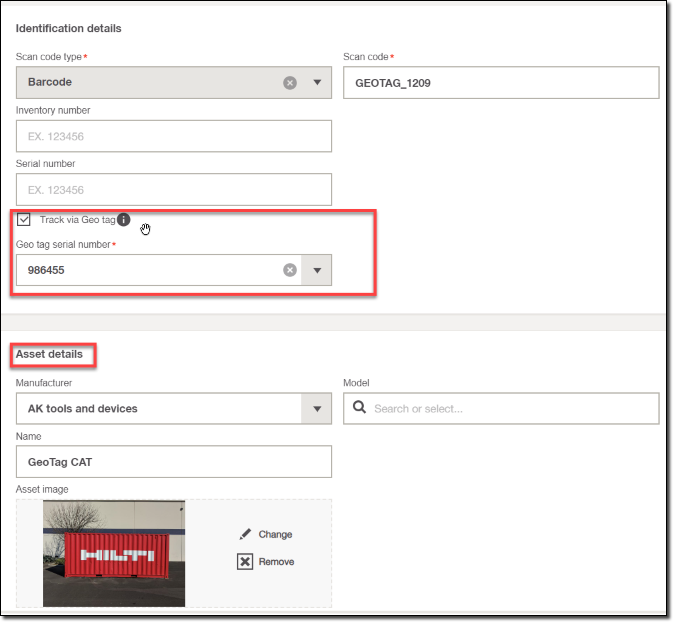 • The geotag will be connected/added to the equipment.