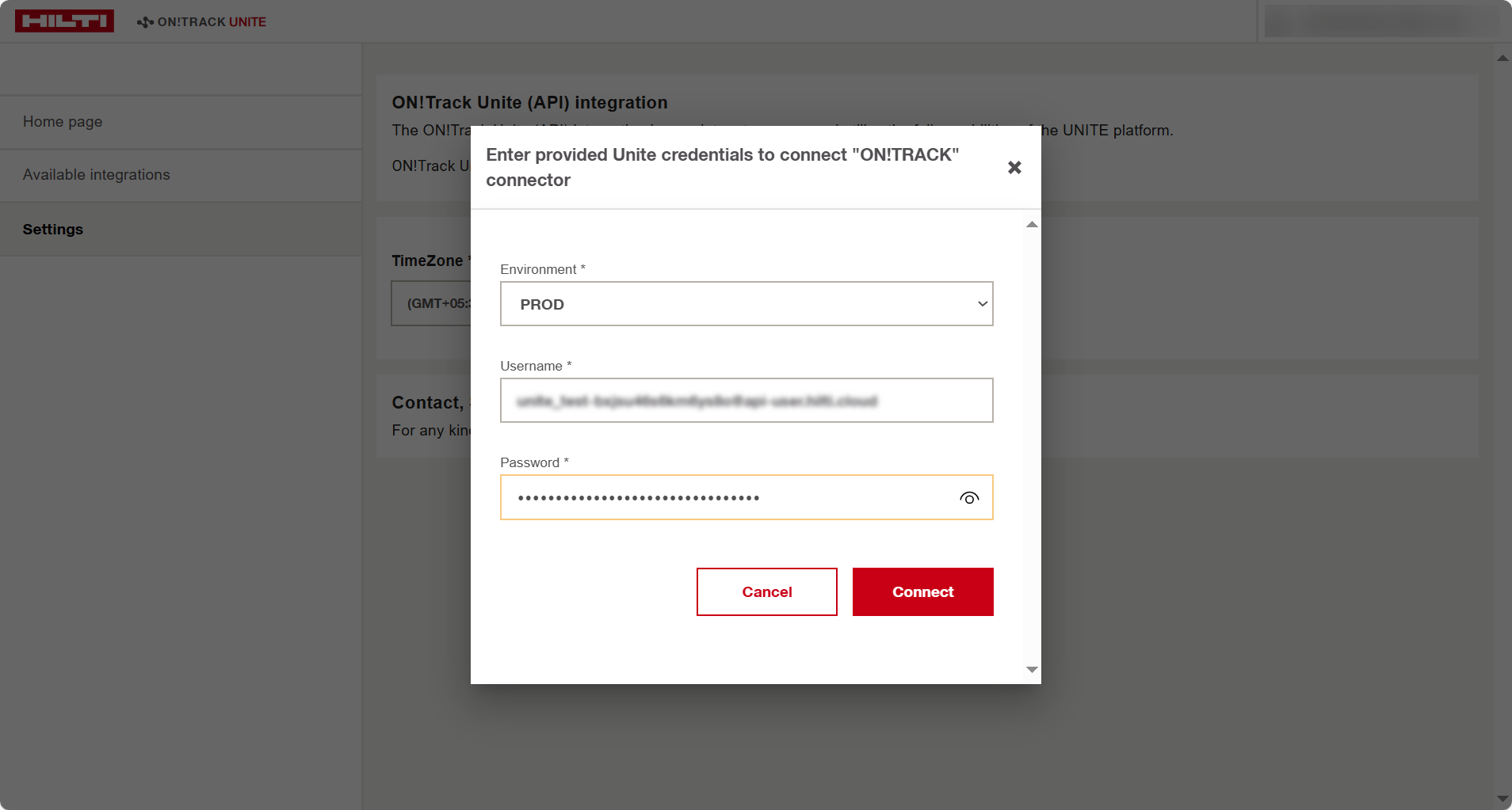 Note: If you have multiple ON!Track accounts, please ensure that the credentials used are for the same account from which the data needs to be synced. Sharing credentials across tenants will result in incorrect data synchronisation.