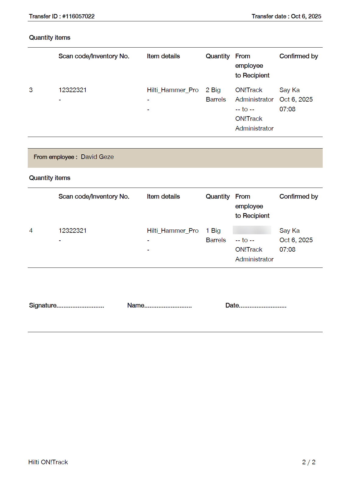A transfer delivery note is automatically generated whenever assets or quantity items are transferred, whether the transfer is performed using the mobile app or the web platform.
