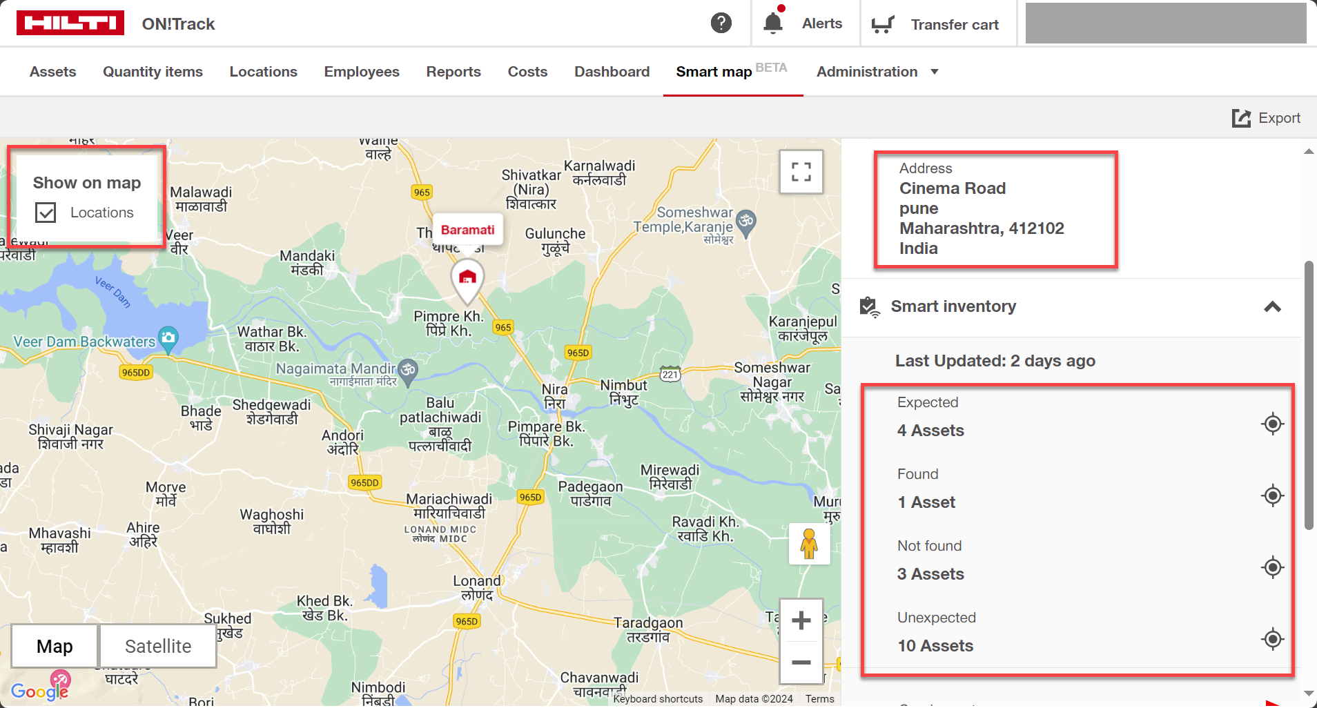 You can now enable locations, including gateway-enabled warehouses and jobsites, on the Smart Map tab with a simple checkbox. In this first iteration, all locations (active, inactive, and gateway-enabled or not) will be displayed for better tracking.
