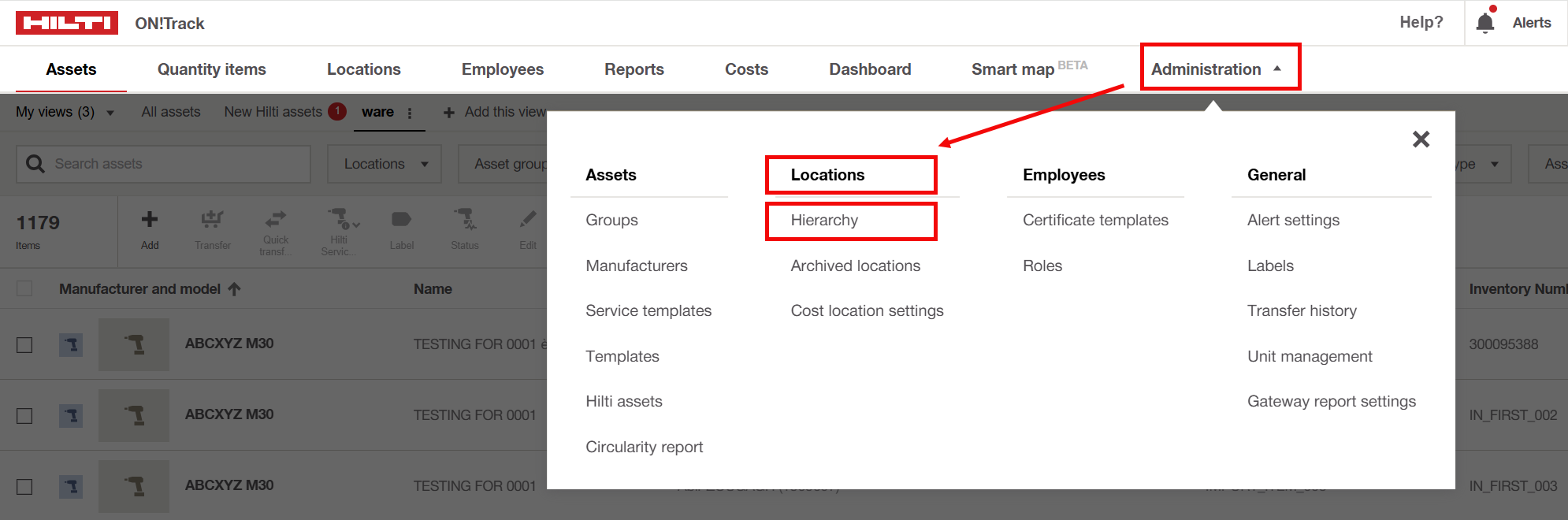 - You can access the hierarchy tab under 'Administration'-->Locations--> Hierarchy.