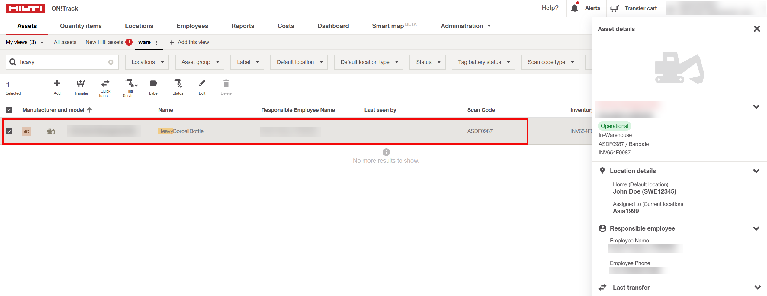 Go to the list view "All assets" and search for the designate heavy equipment you want to edit the assigned service for.
