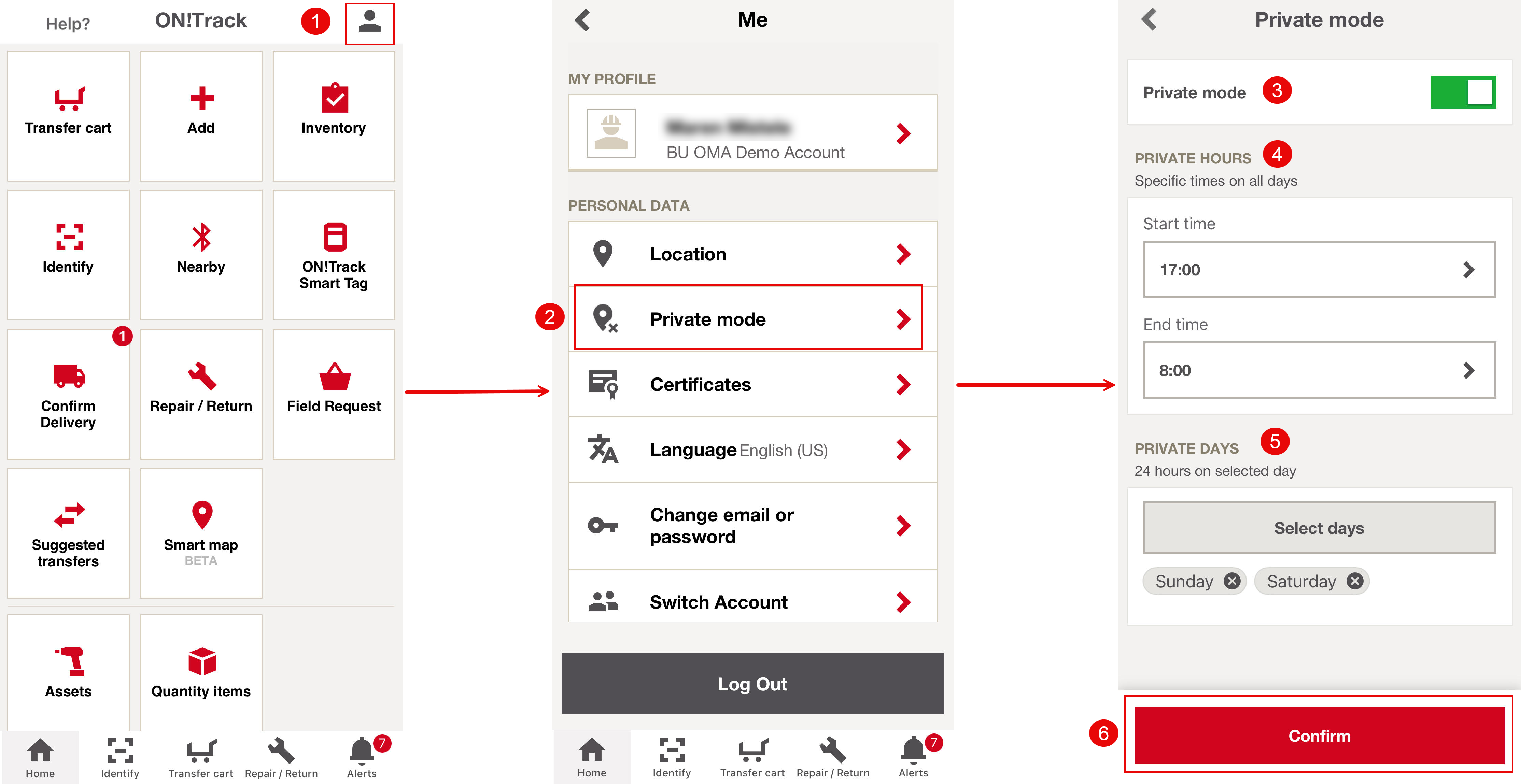 - Click "Confirm" to activate private mode on your mobile device.