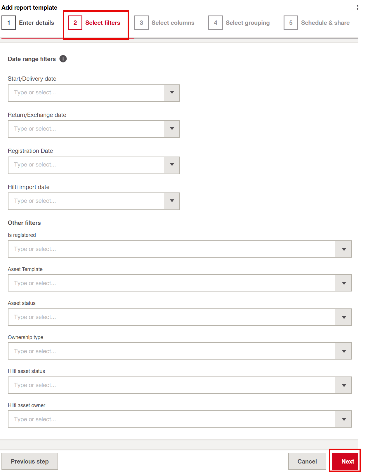 For some reports, you can also use date range filters, but only when dates are relevant. This applies to reports like activity or transfer reports.