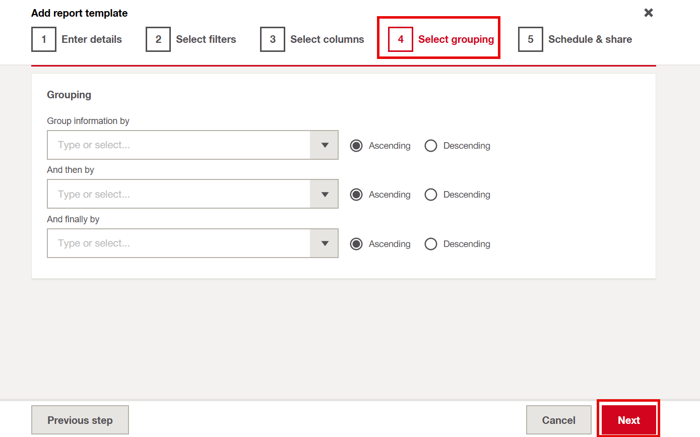 To create a new report, simply go through the five tabs and fill in the details based on what you need.