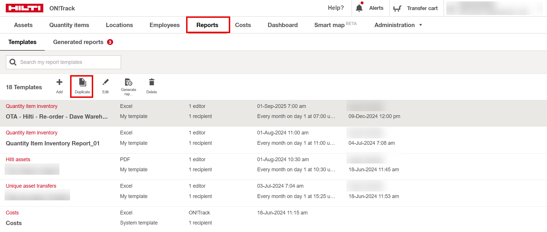 - Start with duplicating report template. There are some that are by default available or you can choose the other created report templates.