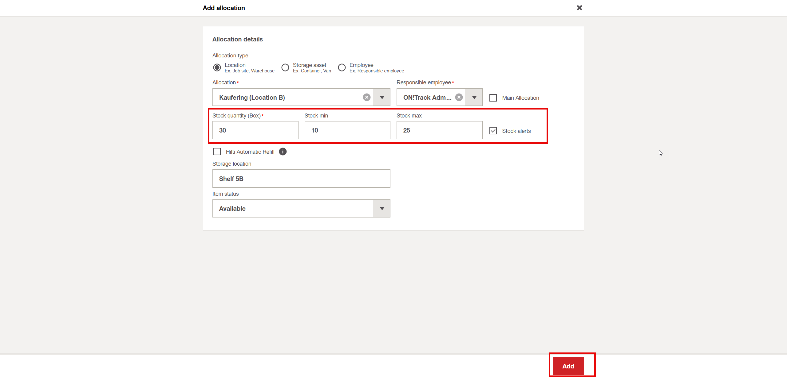 You can set a minimum and maximum stock level for each item or location. This helps you stay in control of your inventory: