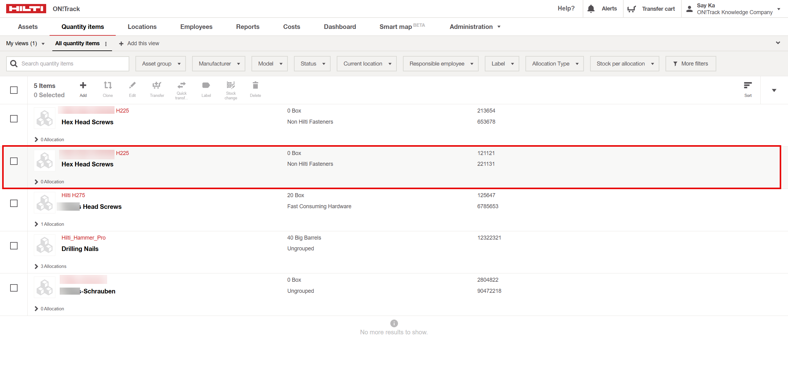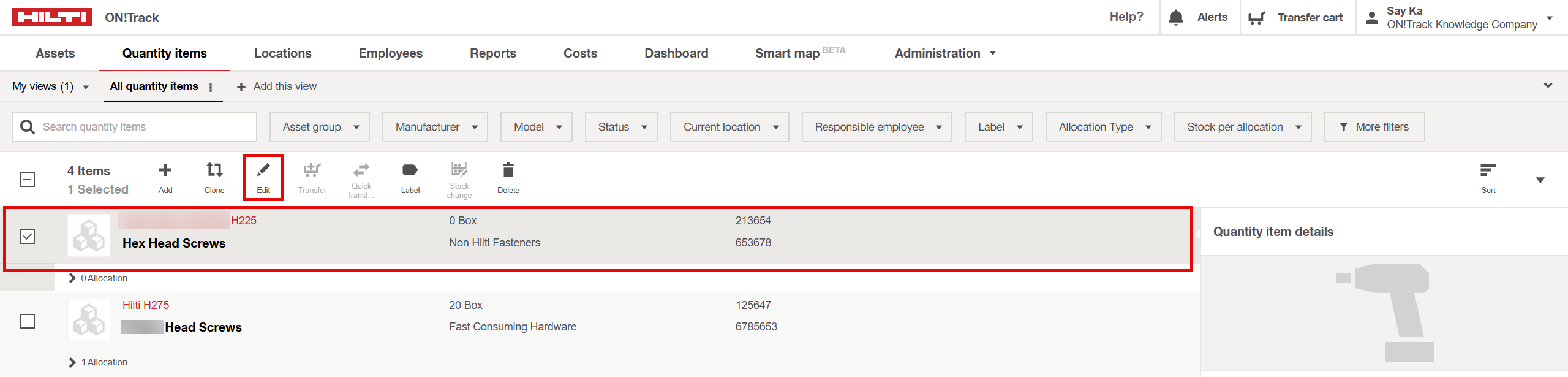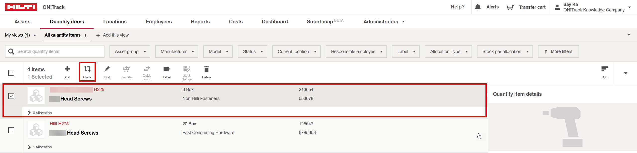 - Select the Existing Quantity Item: Navigate to the quantity items list and select the item you wish to clone.