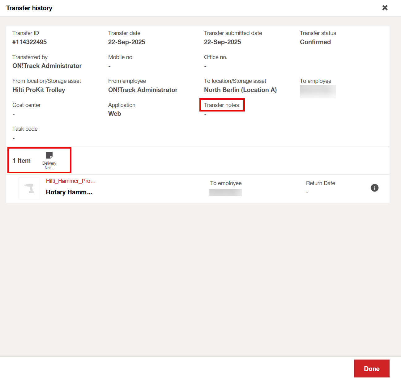 - Make sure to fill in all the needed details when transferring items, whether it's to a Location, Storage Asset, or Employee.