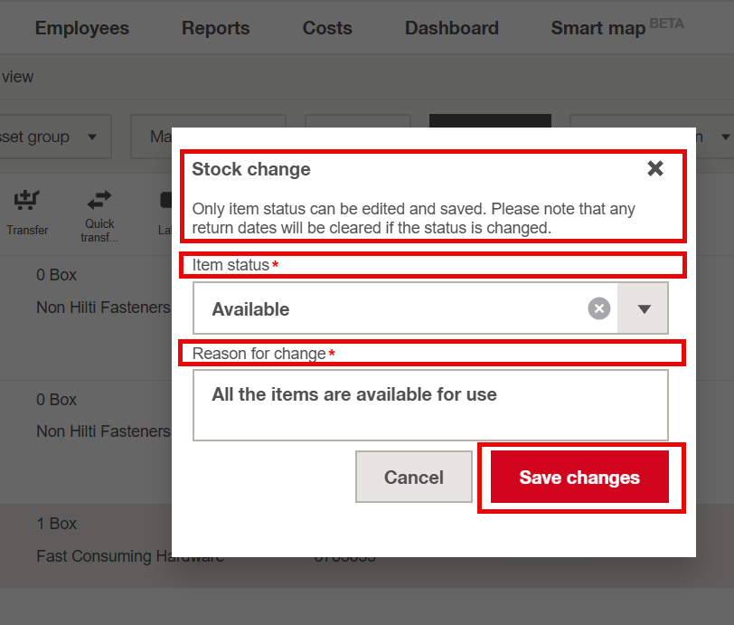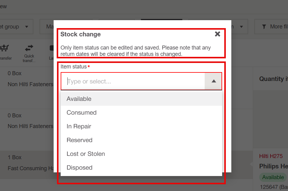 - Status Change:Update the item's condition or location, like marking it as "Avaliable," "In Repair," or "Consumed." This helps track availability without changing the quantity.