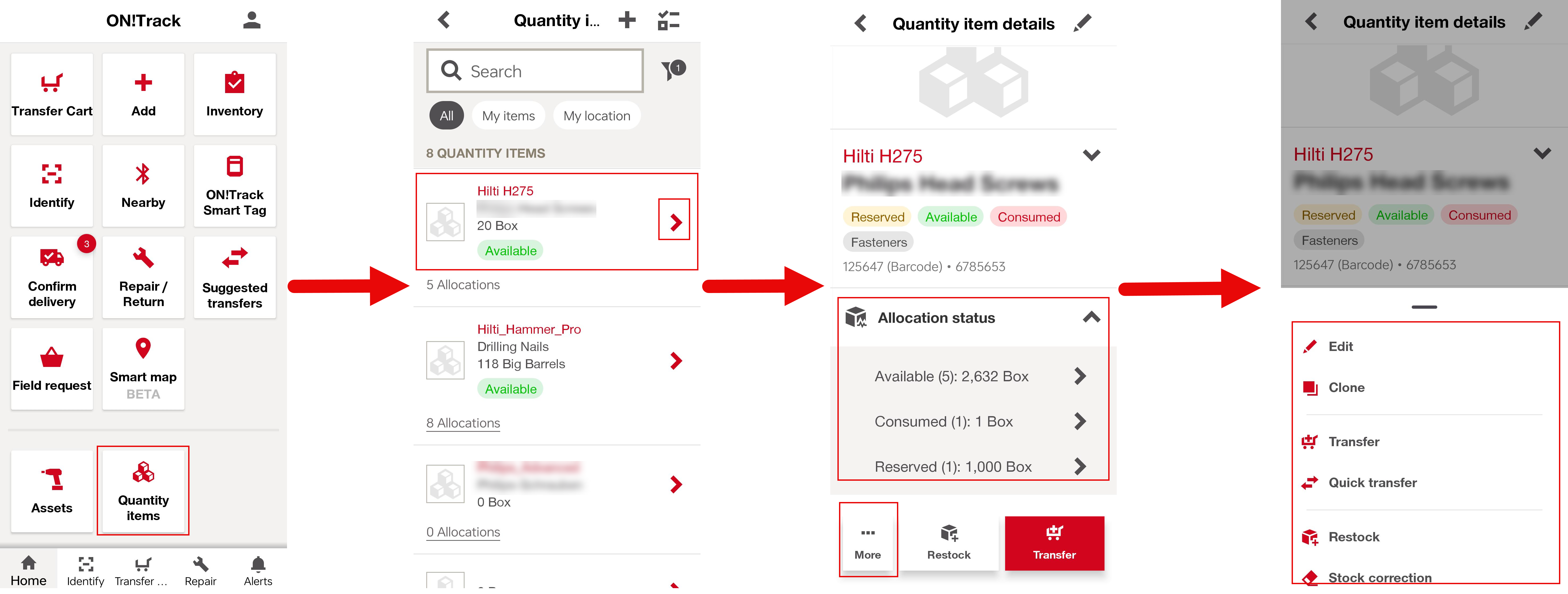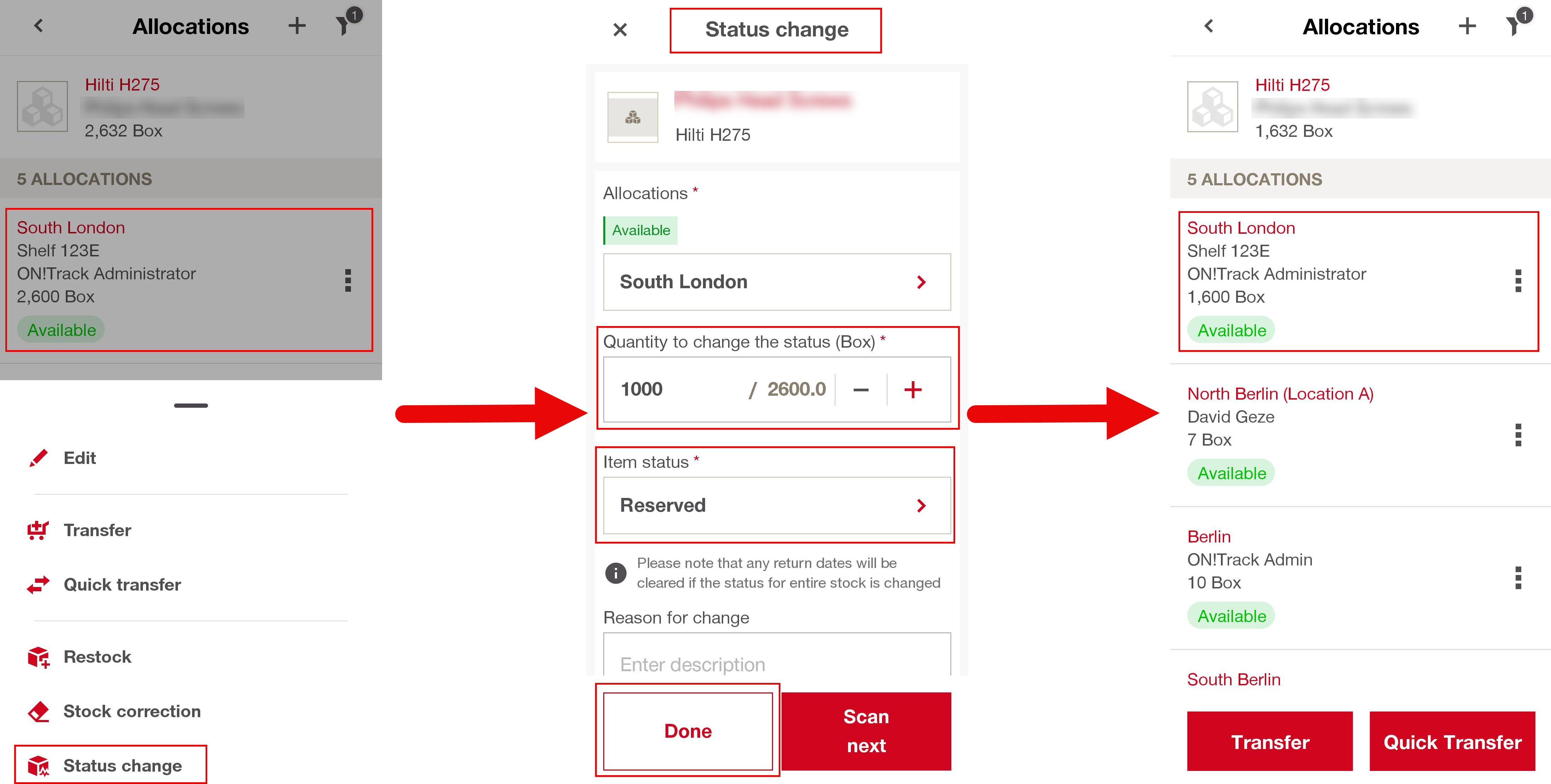 - Enter the quantity to change status (greater than zero) (Update quantities with + / – or the number pad or entering the quantity manually).