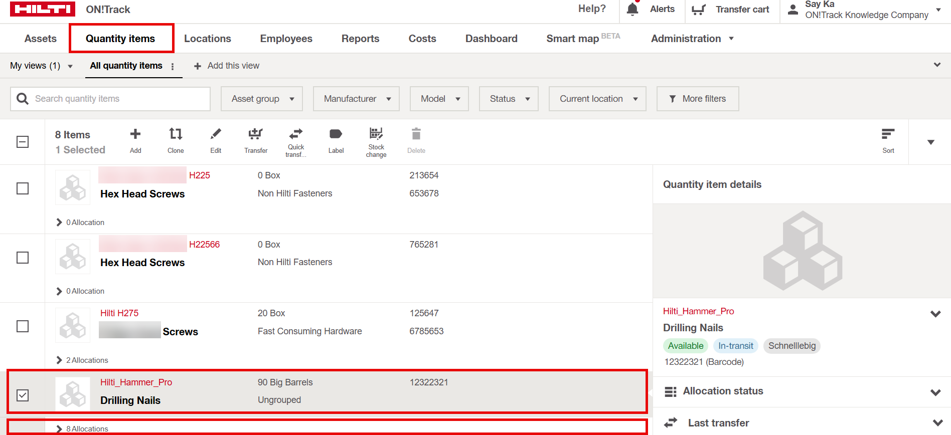 - Select the item quantity, then view its allocations.