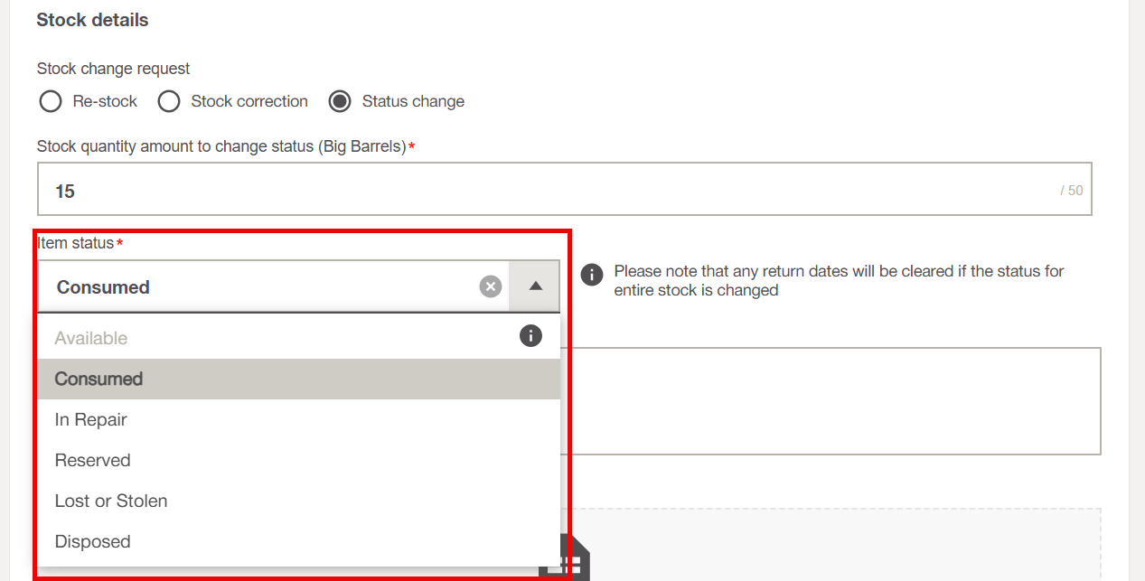 Updating the status helps you keep track of your stock, what’s available, what’s used, and what’s under repair. This keeps your inventory records accurate and up to date.