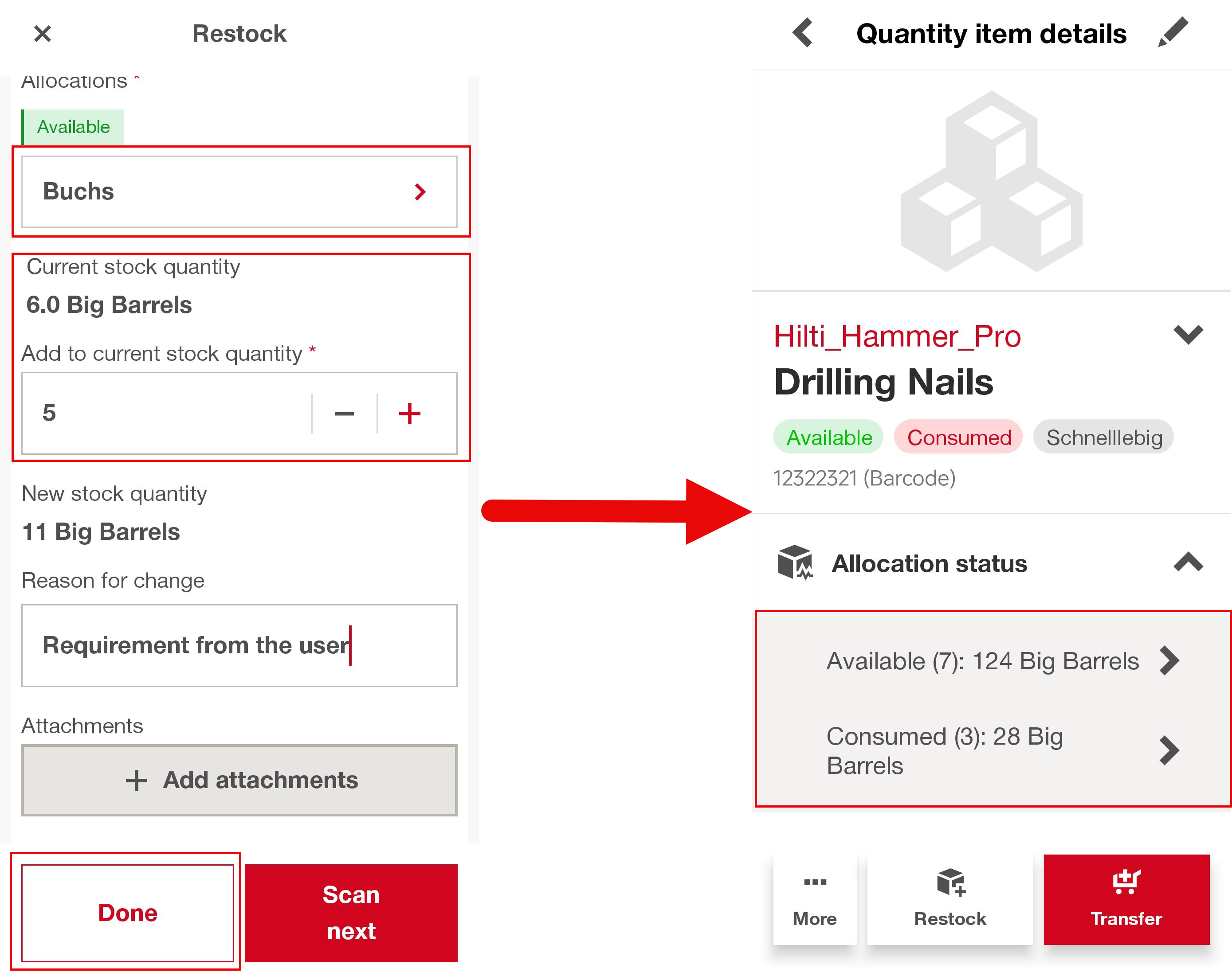 - The app remembers your last three allocations across all stock activities: Restock, Stock Correction, and Status Change.