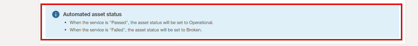 An information pop-up will indicate that the asset status may change automatically based on the service result and company settings.