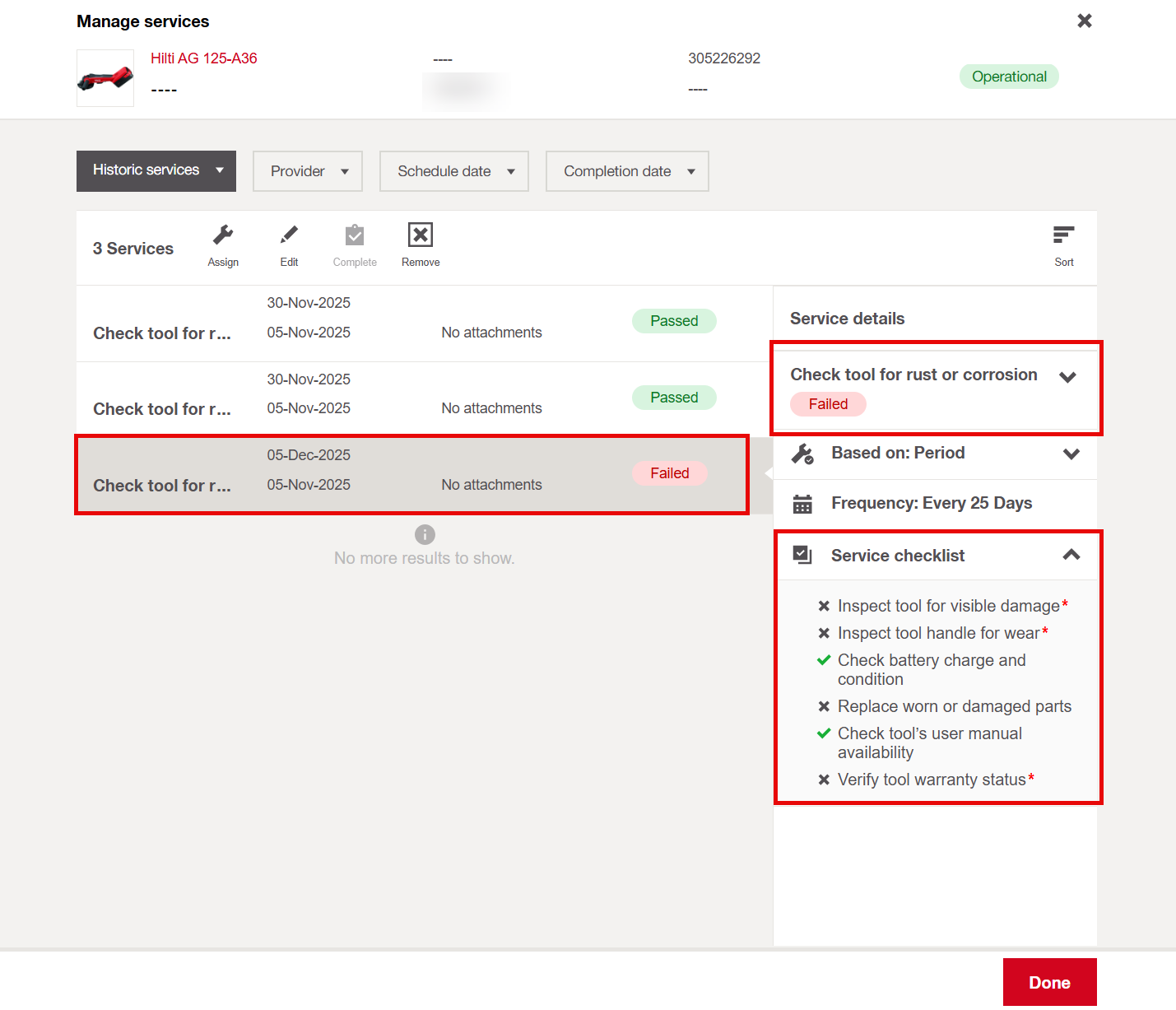 Service completion through a checklist ensures that tasks are completed in the correct sequence, properly documented, and tracked for maximum transparency.