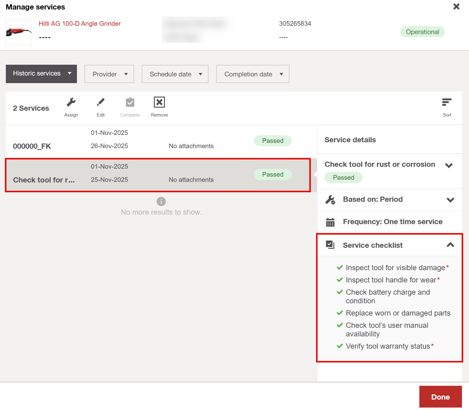 - Once the service is completed, the checklist and result are locked and can’t be changed.