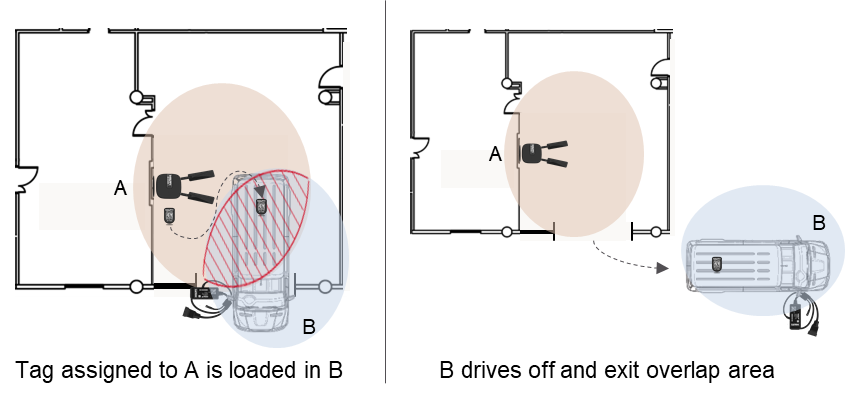 Below is how the system behaves when a tool moves from Gateway A to Gateway B.